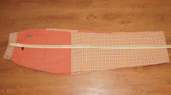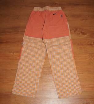 Dětské oranžové kalhoty značky Neverest, velikost 146. Kalhoty jsou v pase do gumy (chybí šňůrka na stažení). Délka je 85 cm.