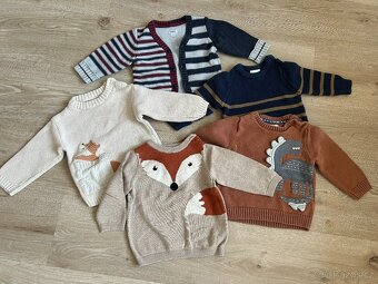 Posíláme dál komplet výbavu oblečení a dalších doplňků pro větší miminko ve velikosti 68 a převážně 74 - syn nosil v období 6 - 11 měsíců (vhodné pro podzim, zimu, jaro). Vše je nošeno, ale v pěkném stavu.