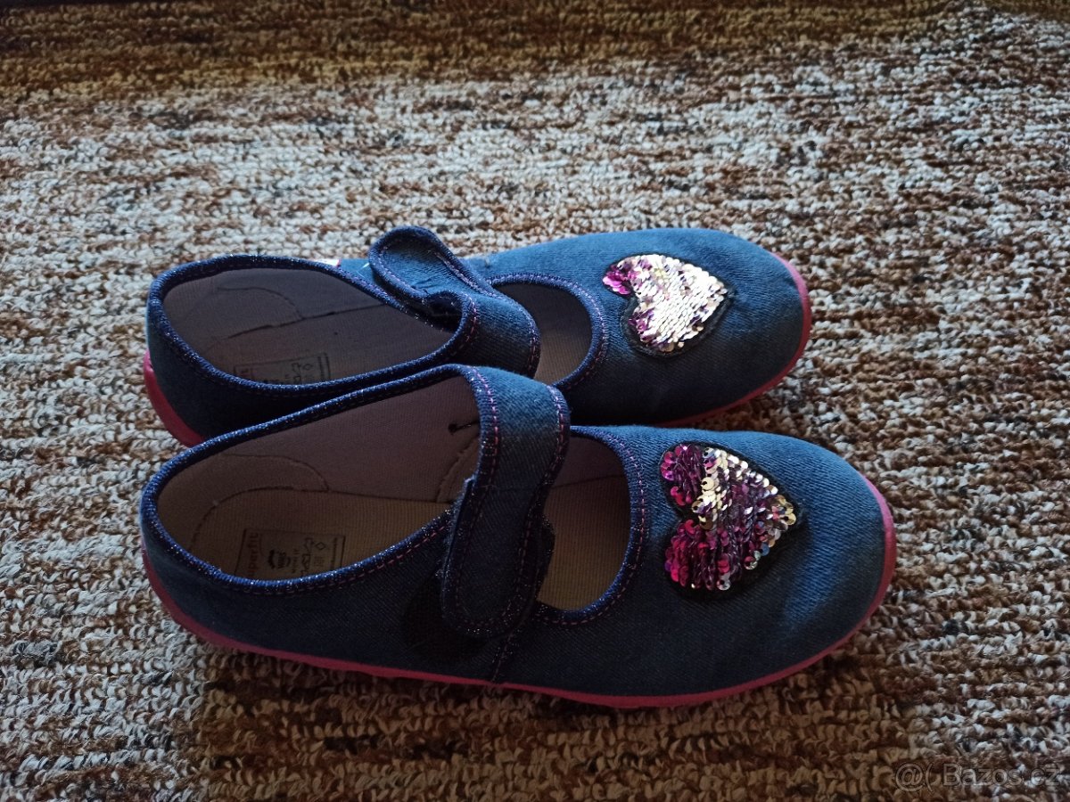 Nabízím krásné zachovalé papuče modré barvy vel. 35.Zapínají se na pásek se suchým zipem přes nárt.Dobře drží na noze,vhodné i pro úzké nohy.Mají pevnou patu,na přední části je pěkná ozdoba.Jsou nošené jen pár týdnů než se uzavřely školy.Takže jsou jako nové!Kupované v Dětských botech.