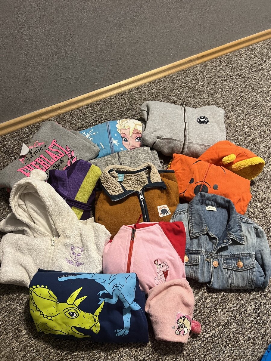 Dětské mikiny a overal - [16.12. 2025]Mikiny vel. 104-116. Teplejší mikina růžová 98, fialová 110, overal 110. Poslední foto 122-128 teplejší mikiny. Osobní odběr okolí Tišnov nebo Kuřim jinak zásilkovna