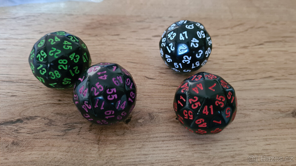 Hrací/herní 60ti stěnné kostky. Nehrané, nepoužité. V balení po 4ks. Cena za balení 200,-