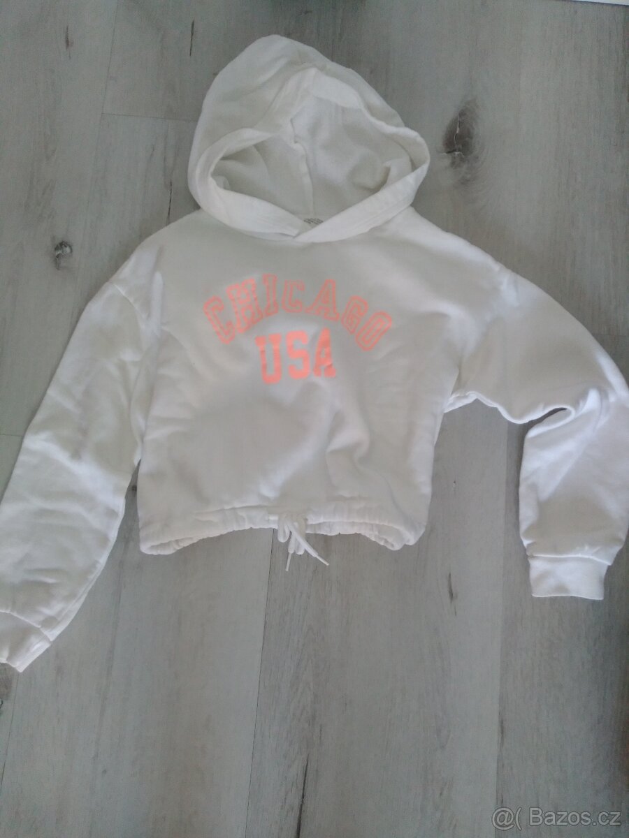 Pyžamo vel. 140 80 Kč, bílá mikina s kapucí vel. 140 80 Kč