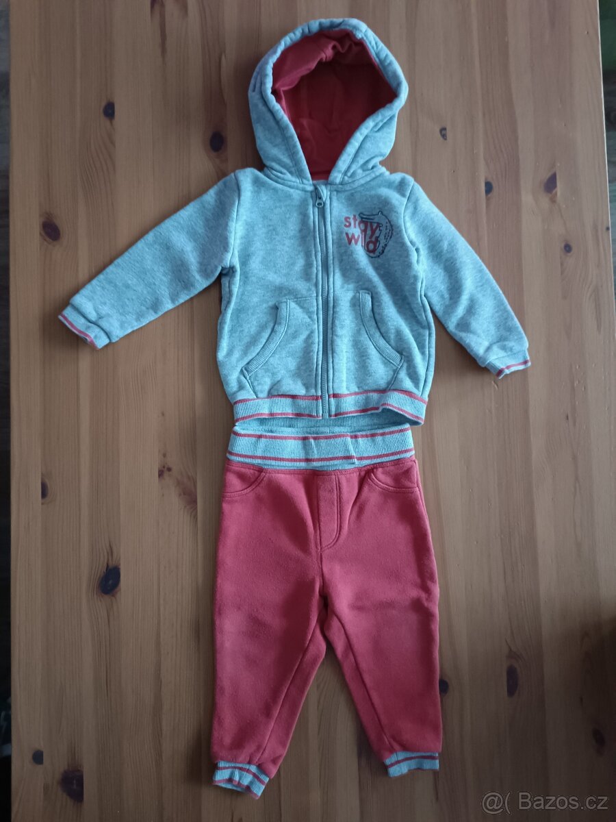 velikost 74/80, 9-12 měsíců, tepláky a mikina s kapucí, nošené, prací žmolky