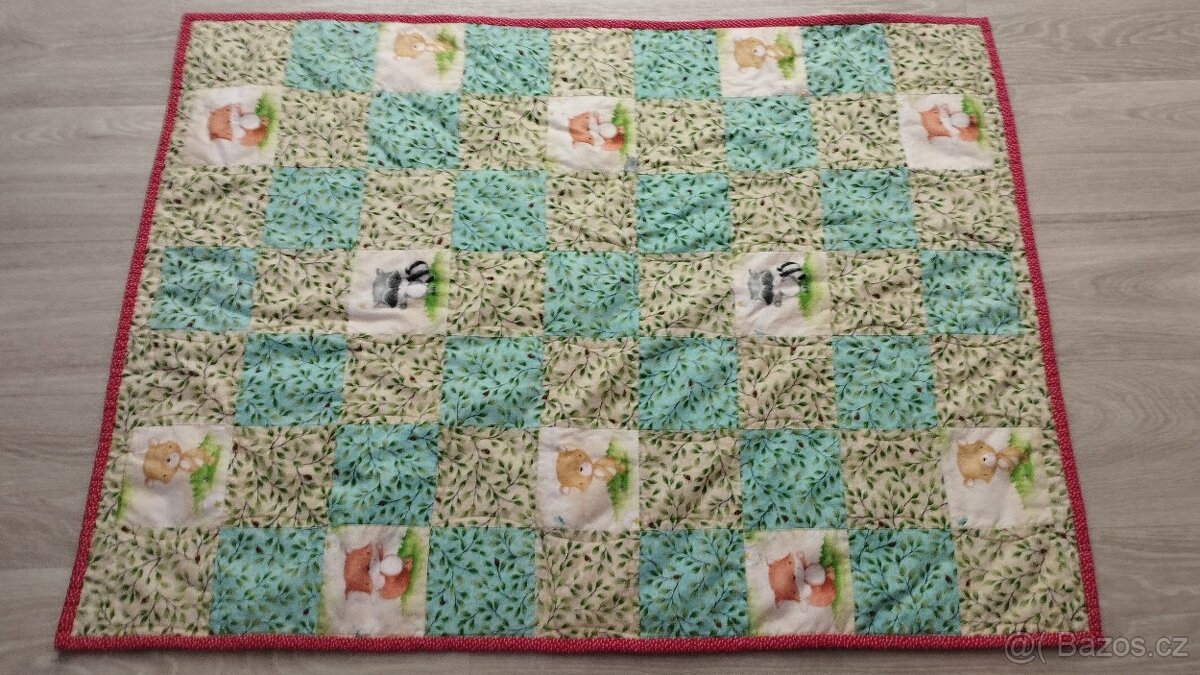 Patchworková deka, 92x69cm, oboustranná, na druhé straně je žlutý mink, šitá na zakázku, top stav, 300,-