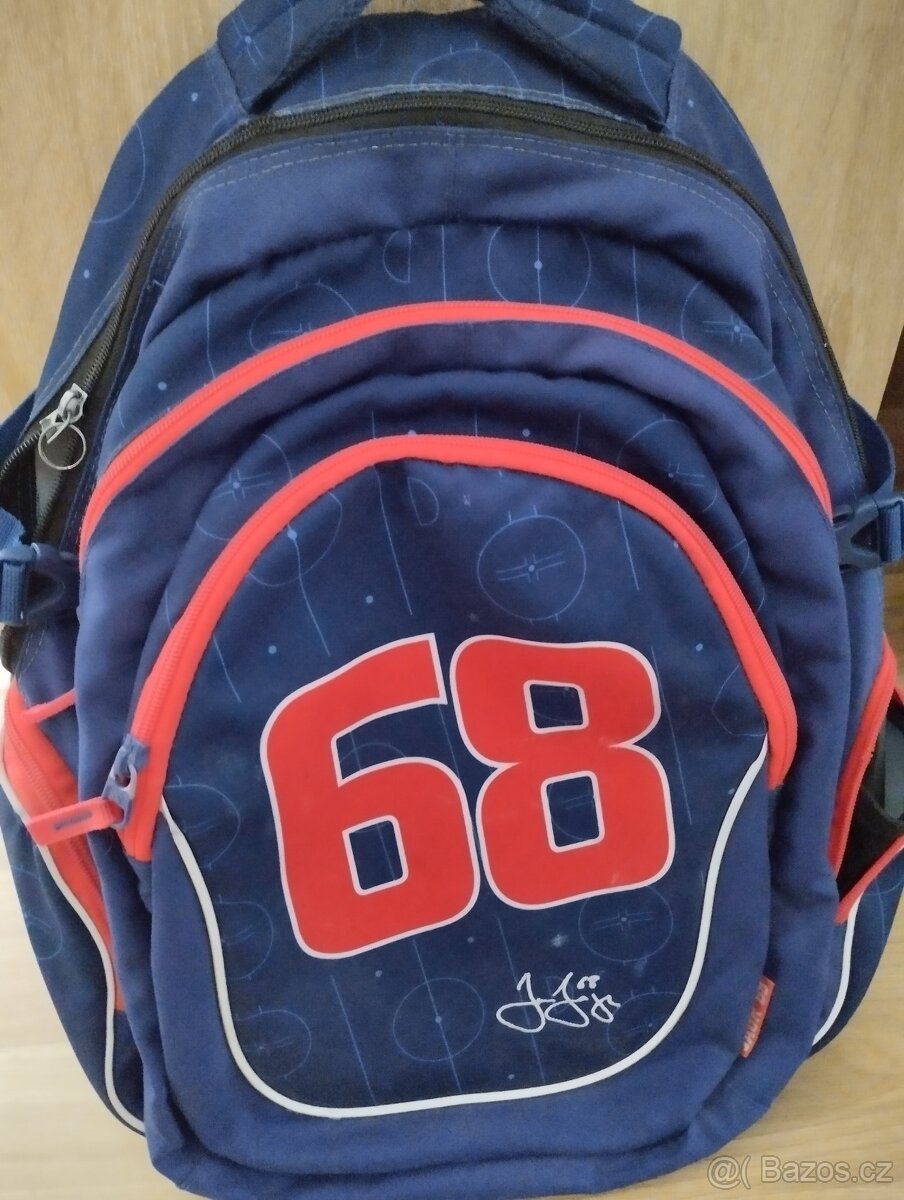 Nabízím dětský školní anatomický batoh pro 1. stupeň ZŠ s podpisem Jaromíra Jágra . Limitovaná edice. Použitý, ale ještě poslouží. Jeden zip vyměněn za černý. Hlavní zipy jsou funkční, chybí pouze jezdec na postranní kapsičce na láhev . Na popruzizich reflexní prvky.