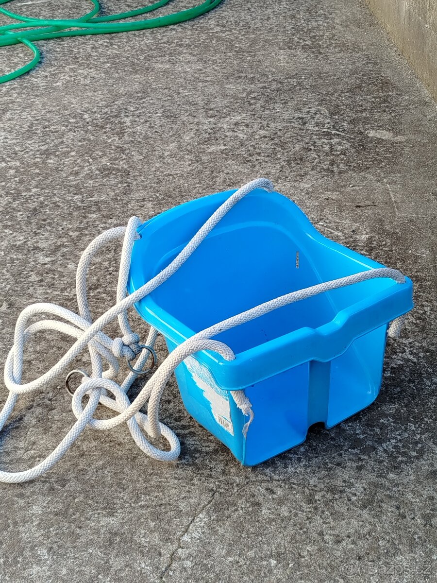 Dětská houpačka - [25.12. 2025]Dětská houpačka do hmotnosti 19 kg. Použitá jako nová v dobrém stavu, závěsná lana a oka součástí bez vad. Osobně nebo poštou. Vyrobeno v Maďarsku.
