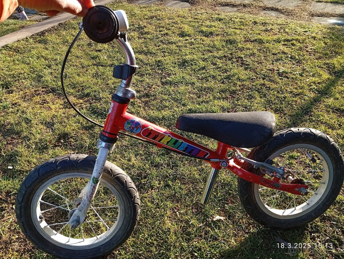 Prodám dětské odrážecí kolo se zadní brzdou. Kosmetické vady, ale plně funkční, nafukovací kola.
