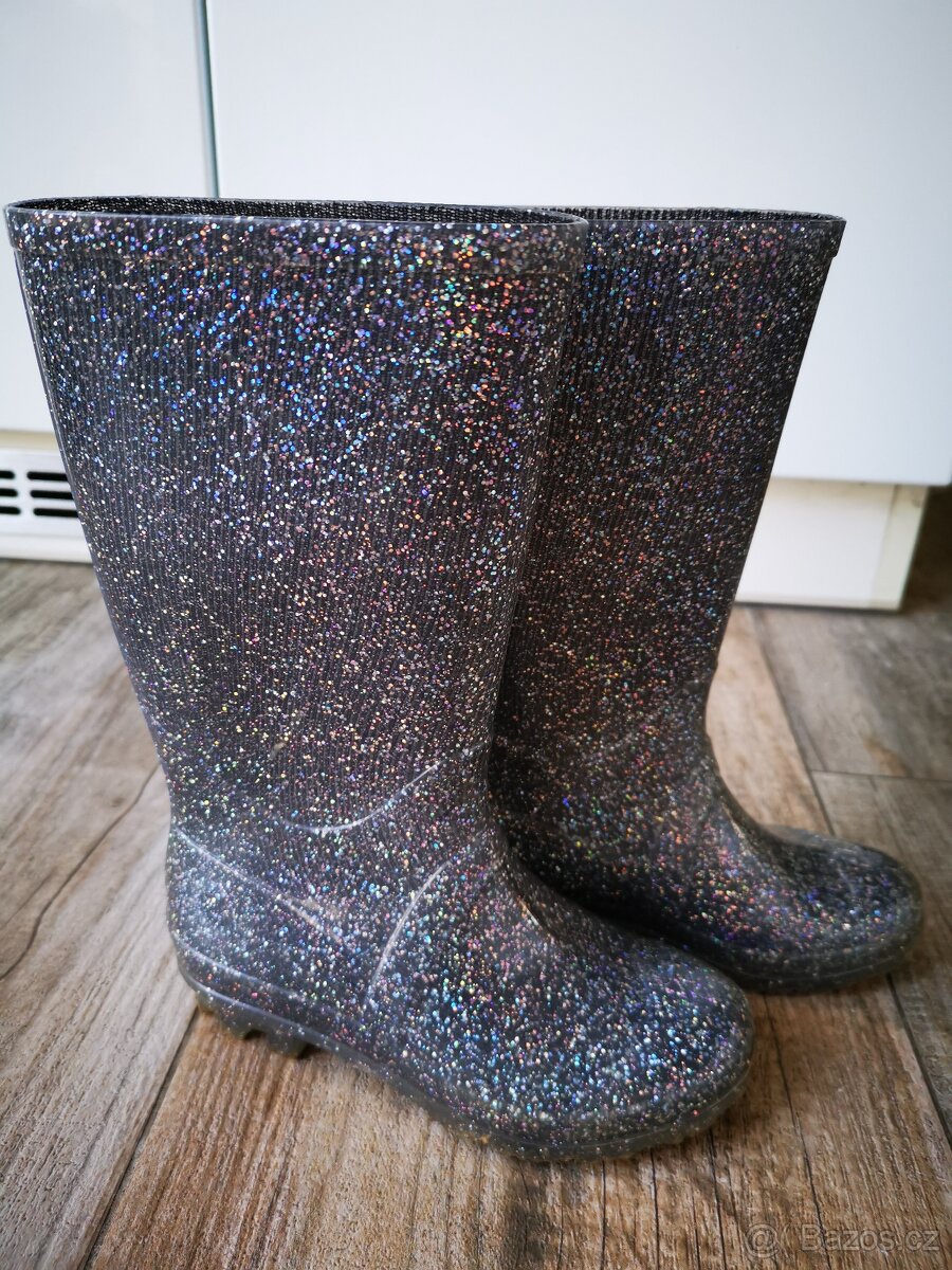 NEXT gumáky 28 velikost NEXT , délka stélky uvnitř 18,3 cm. Jako nové, bez vady, stříbrné třpytivé, s barevně duhovými odlesky. 120,- Kč