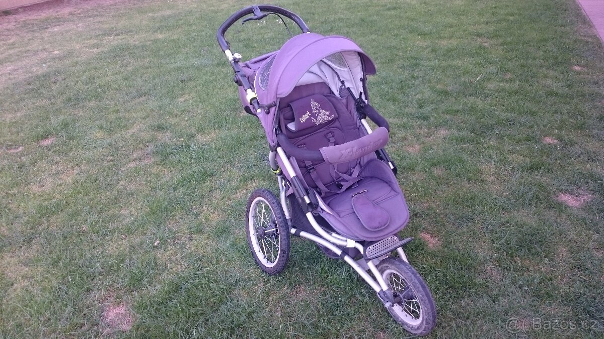 barva Europe (tmavě šedá, ačkoliv při určitém úhlu focení vypadá do fialova), 2x originál pláštěnka, moskytiéra, nánožník, fusak, taška, + kompatibilní hluboká korba šedé barvy... skvělé poježdění, lehoučký, snadná manipulace jednou rukou při běhu či inline... nese známky používání a dlouhého stání v garáži - např. oloupané madlo