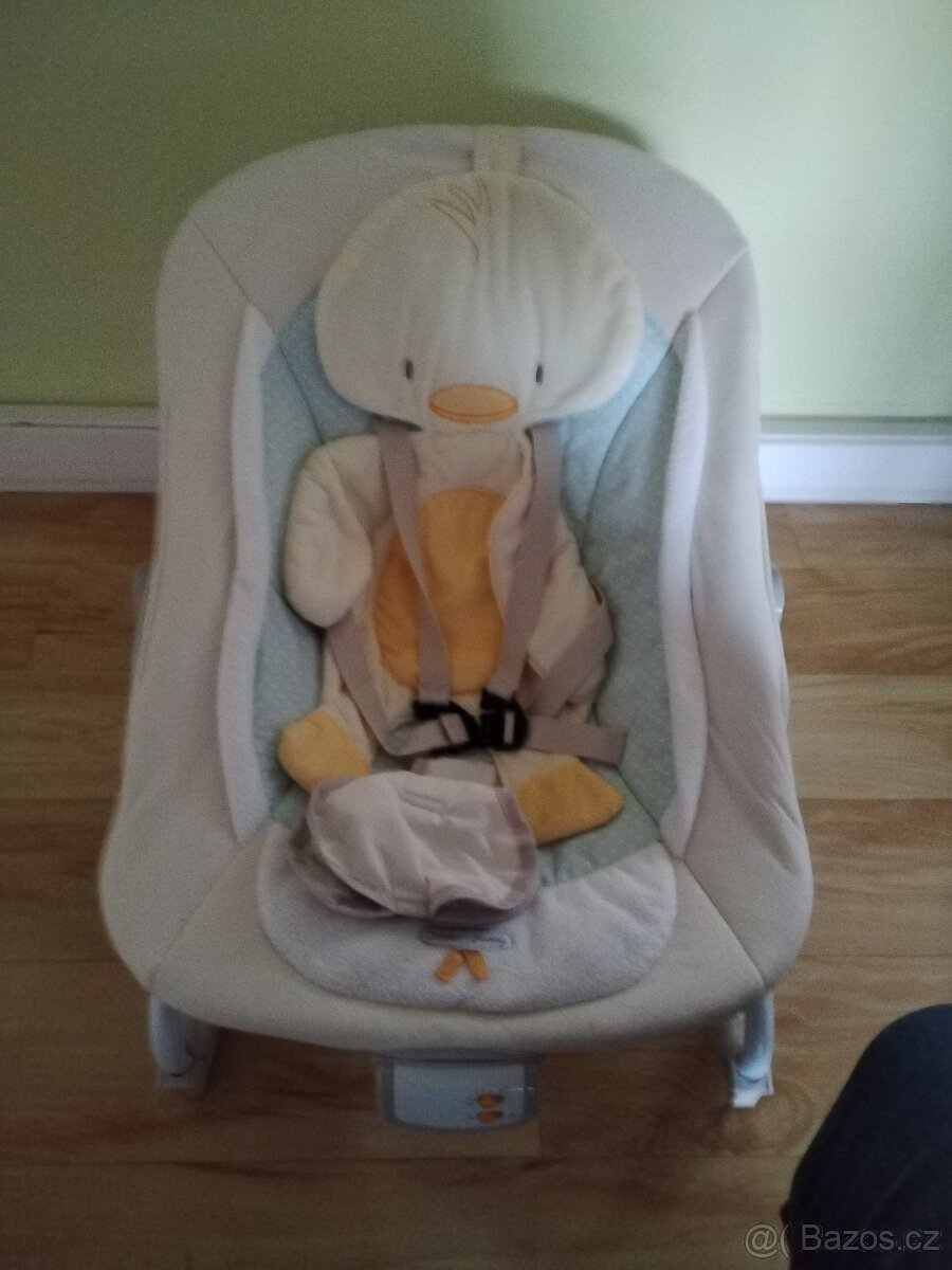 Prodám houpací sedátko s hrací hrazdičkou pro děti do 18-ti měs., přehrává melodie - viz foto.