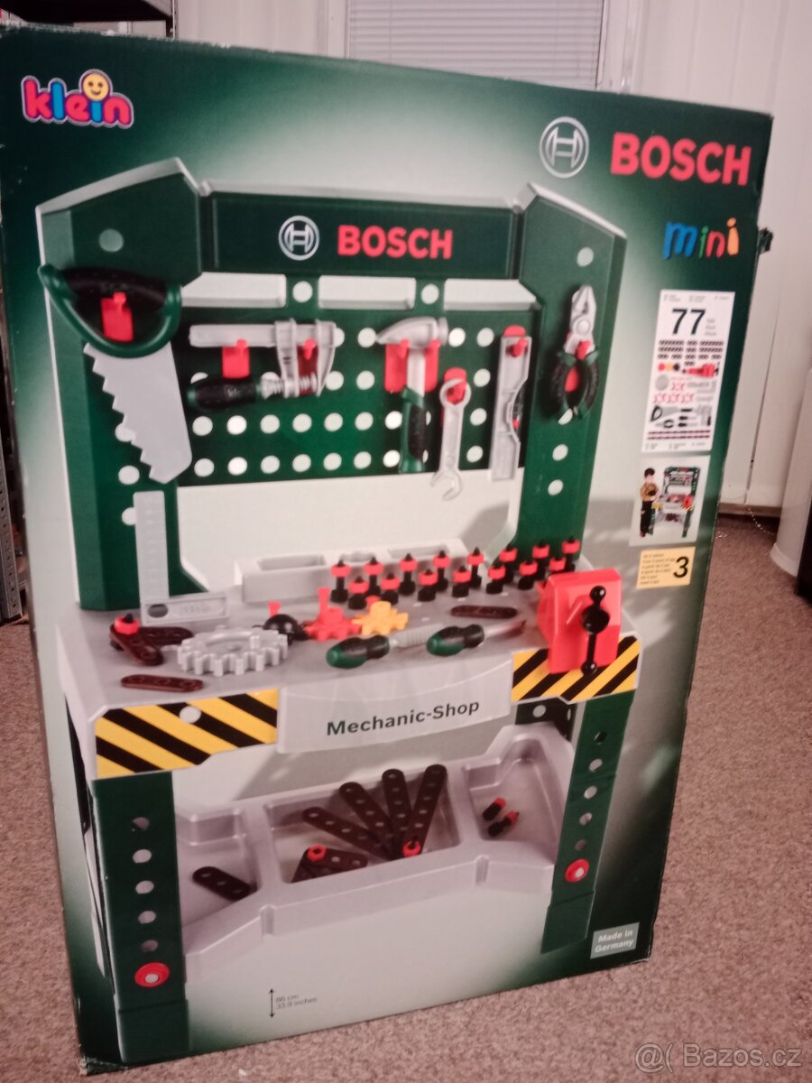 Dětský pracovní stůl BOSCH MINI. - [21.12. 2025]Prodám dětský pracovní stůl BOSCH MINI. Zachovalý, místy zbytky lepidla od odstraněných samolepek a stopy "práce" na některých kusech nářadí.