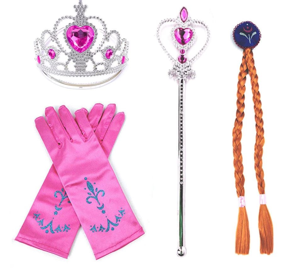 Prodám novou sadu doplňků princezny Elsy a Anny. Sada obsahuje - cop, rukavice, hůlka, korunka. Cena je uvedena za sadu. Ihned k dodání