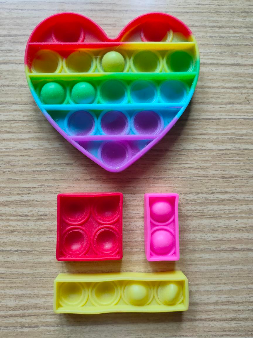 materiál silikon, nezabere místo, zabaví a procvičí jemnou motoriku, rozměr srdíčka cca 9x9cm.