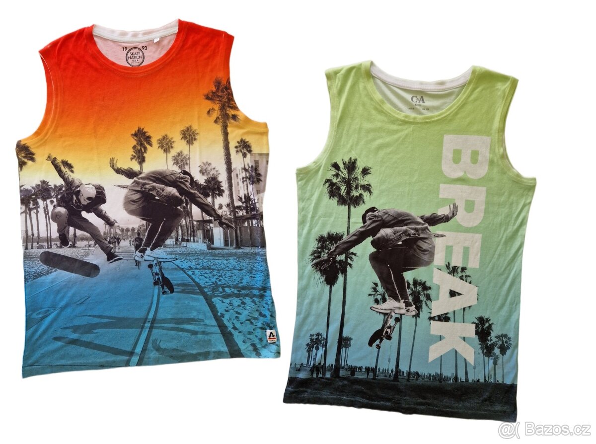 Barevné tílko s potiskem, příjemný lehký materiál, 100% polyester, drží tvar, nevytahuje se, rychleschnoucí. Velmi pěkný stav, málo nošené.