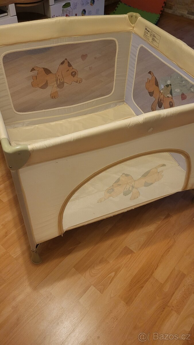 Prodam dětskou ohradku s pejskem. Málo používaná. Na jedne bocnici, malá dírka viz foto. Neni problem zašít. Jen osobní převzetí.