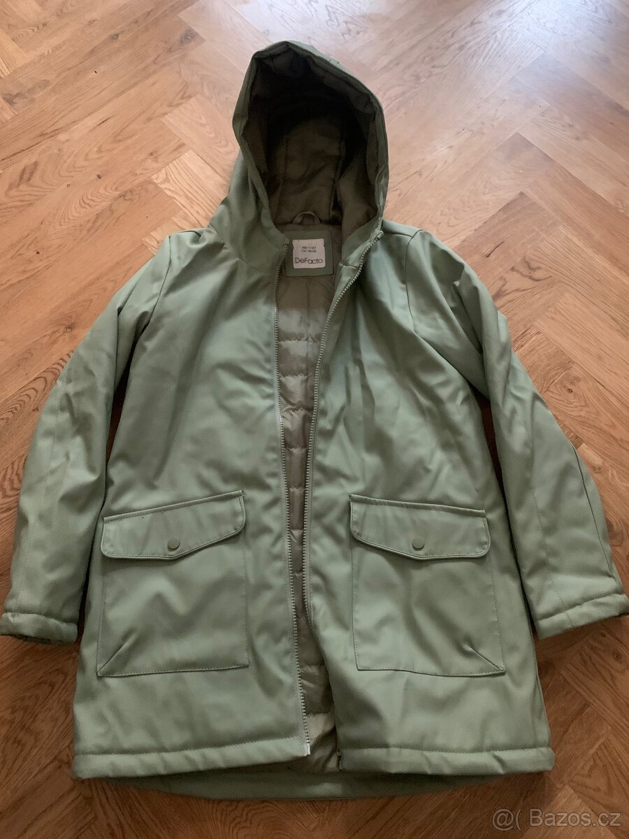 Nepromokavý(guma) s podšívkou kabátek, světle zelený, nepoškozený vel 146-152