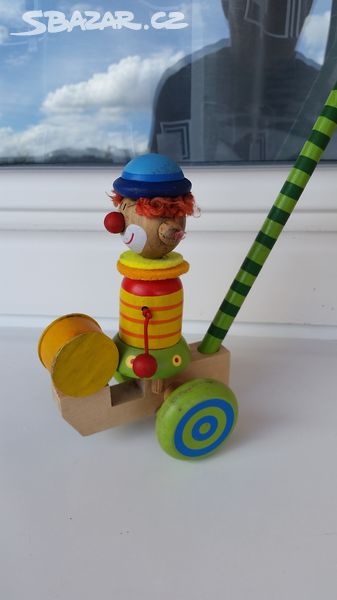Délka tyčky cca 50cm, výška klauna i s kolečky cca 17cm,