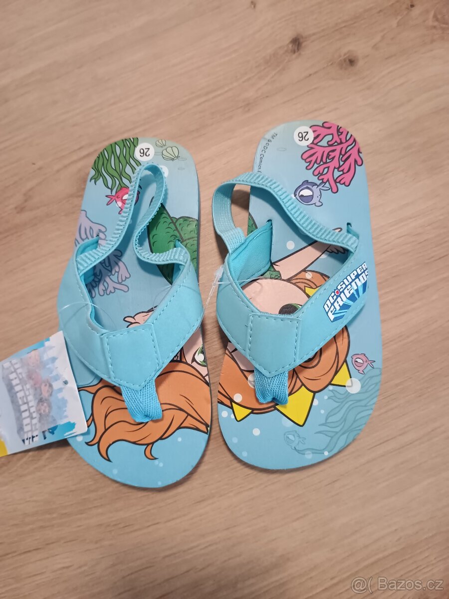 Nové letní pantofle / sandály / žabky vel 26 kupované s předstihem ve Sportisimu, ale bohužel dceři vyrostla noha a jsou malé. Cena 49,-