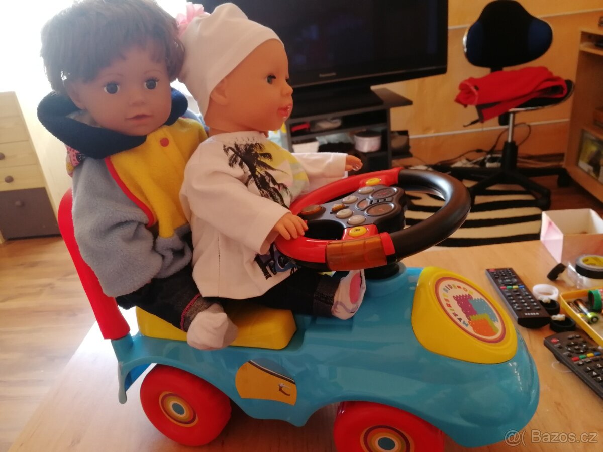 Panenka Baby Born chlapeček 48 cm má klubová kolínka, dokáže i pěkně stát, má krásné vlásky. Cena i s autíčkem 800,-, kolo 300,- při zakoupení obou panenek s doplňky kolo zdarma.