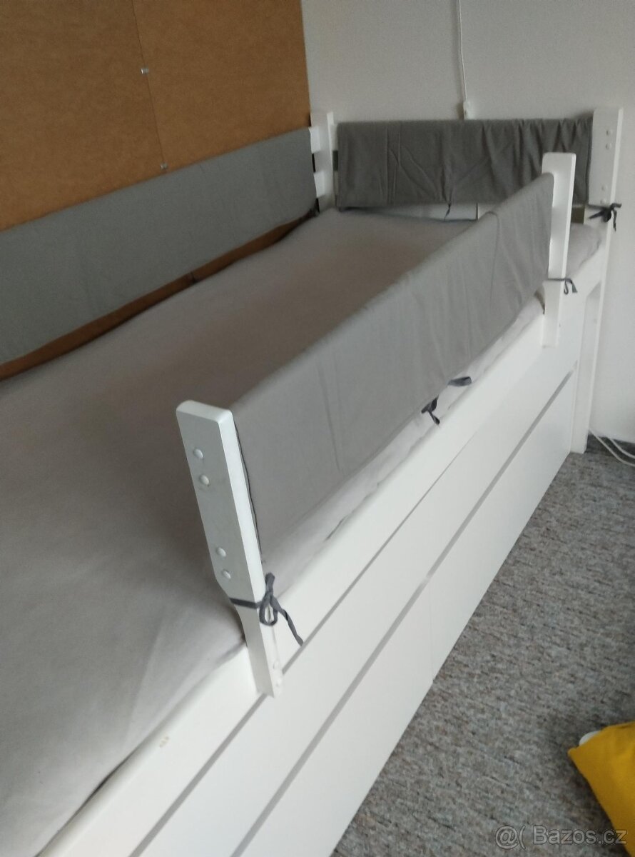 Prodám šité na zakázku 4ks chrániče na mantinely postele šedé barvy ve velmi dobrém stavu.