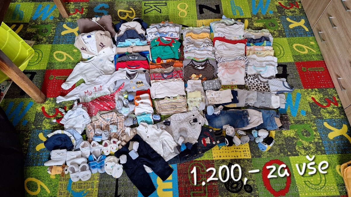 Velikosti zhruba od 68 po 116, věci jsou čisté, zachovalé, některé nové.