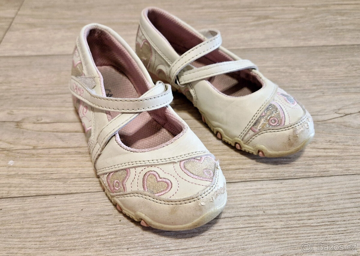 Dívčí střevíčky, vel. 28 - [10.11. 2025]Bílé baleríny, balerínky s podpatkem zn. Cupcake ve velikosti 28. V dobrém stavu.