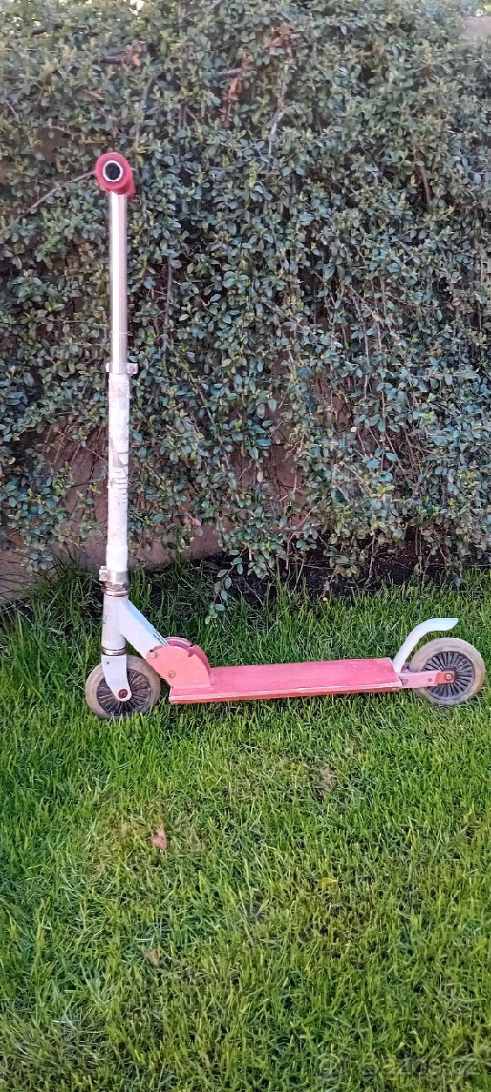 Dětská koloběžka - [4.12. 2025]Dětská koloběžka se 3 kolečky, nastavitelná výška řídítek (3 pozice) pro děti od 2 do 5 let (80 až 115 cm), vše funkční a kompletní.