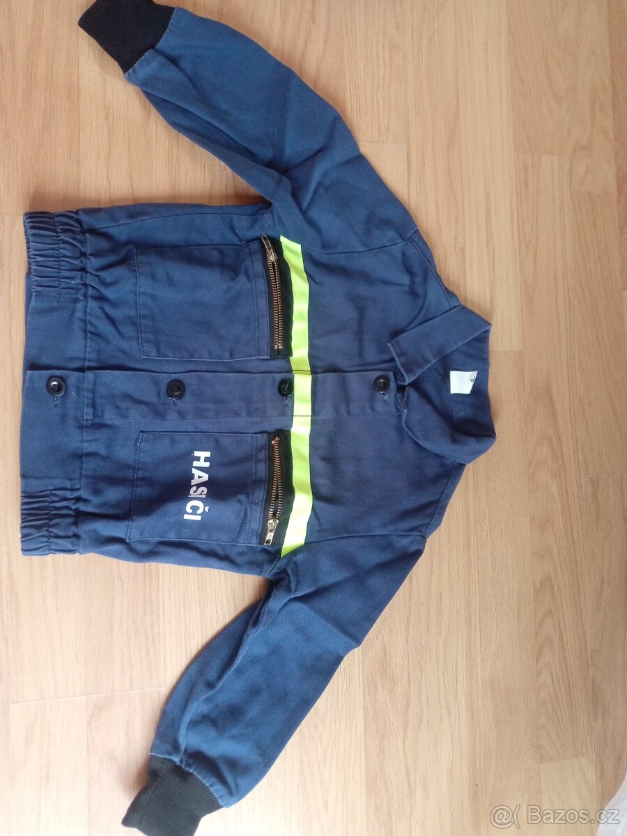 Prodám dětský bavlněný hasičský oblek (halena a kalhoty s laclem), vel. cca 98. Ušitý českou firmou Palička. Perfektní stav. Funkční zipy na kapsách a poklopci, lacl se sponami. Osobní předání Dobříš, Příbram, Praha-Karlovo nám., Anděl. Nebo mohu zaslat.