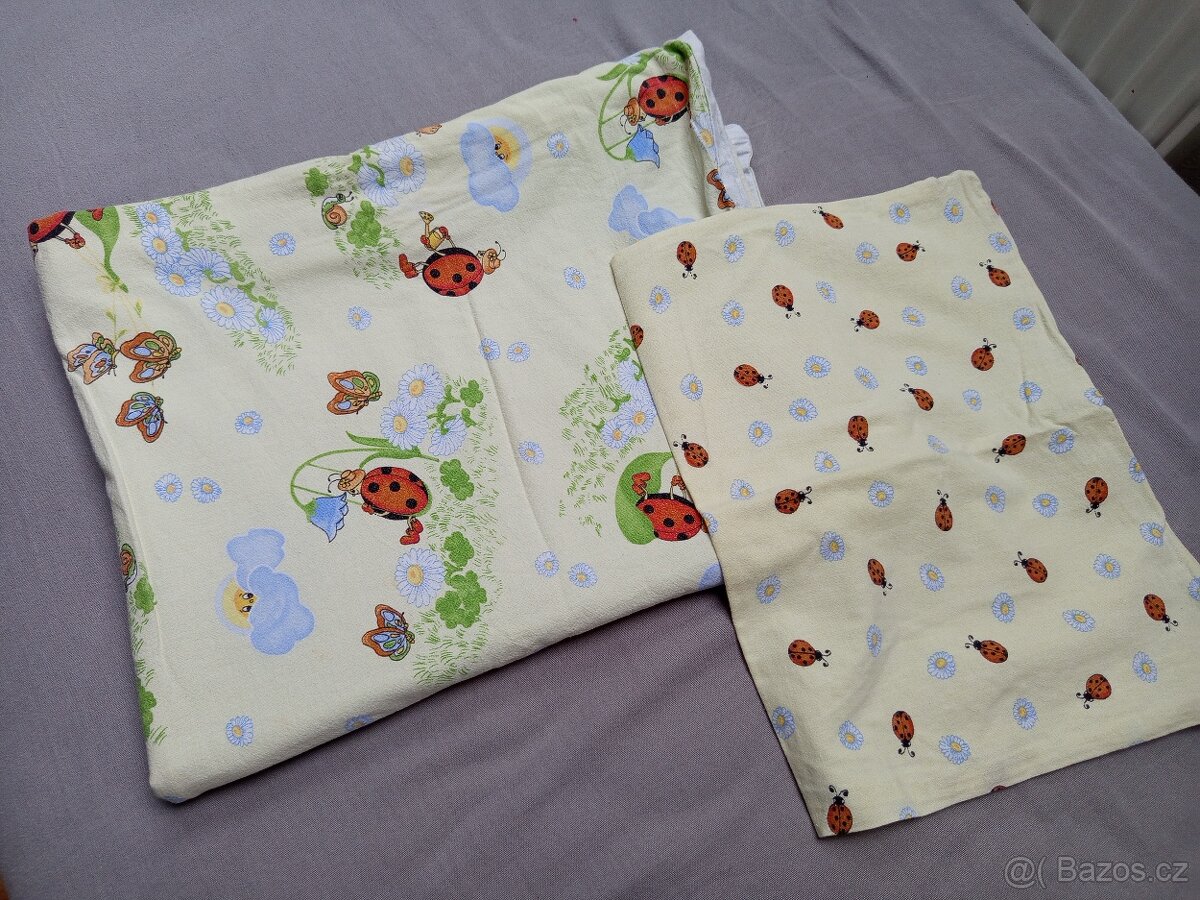 Povlečení na polštářek cca 40x60 cm + povlečení na peřinku cca 120x90 cm. Materiál 100% bavlna.