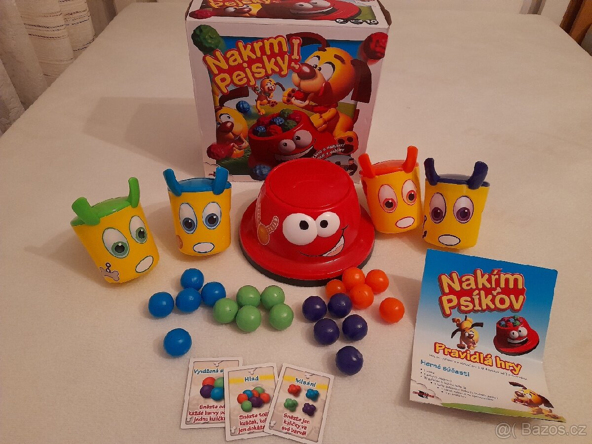 Hracky - [24.10. 2025]Hra Nakrm pejsky - od 3.let, jakmile pejskova miska přeteče a kuličky se rozutečou do všech stran, musíte jich co nejvíce posbírat a sníst. Pozor na kartičku, ktera určuje, zda máte sbírat pouze kuličky své barvy, od každé barvy jednu či vše, co vám ...