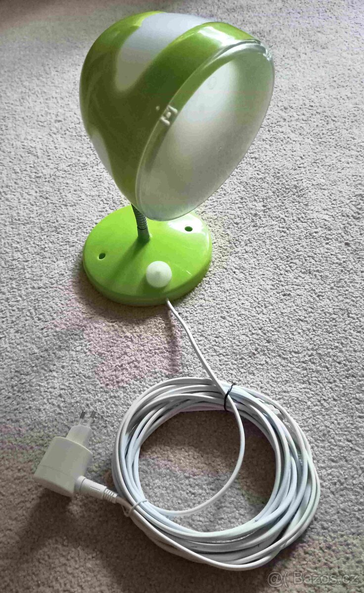 Prodám dětskou lampičku na zeď z IKEI. LED žárovka G4 12V max. 20W, ohebný „krk“, zelená. Nepoškozená, plně funkční, prodloužen přívodní kabel od trafa. Cena 70,- Kč. Doručení dohodou. Poštovné: Balík Do ruky 150,- Kč, Do Balíkovny 80,- Kč, Zásilkovna na pobočku 89,- Kč. Při osobním odběru – dovezu kamkoliv v Ostravě a platba jen za zboží při předání.
