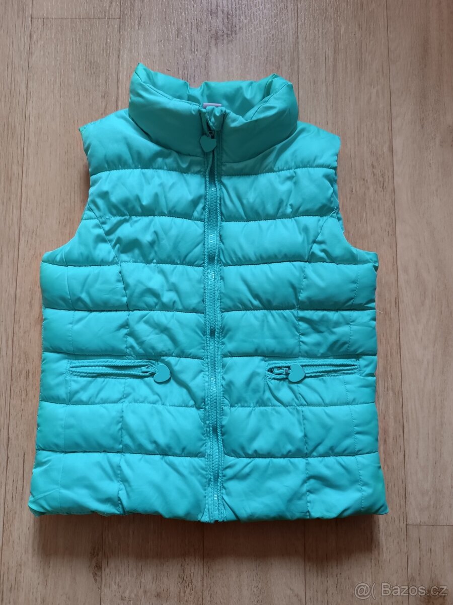 Zelenkavá vesta Dopodopo vel. 98, délka od ramene u krku dolů 40 cm, šířka 33 cm. Nošená, na krku stopa po nálepce se jménem. Osobní odběr v Praze 8 Bohnice, zásilkovna, balikovna. V případě zájmu prosím pište přes formulář/ mail.