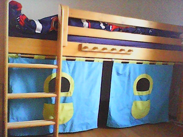 Prodám příslušenství k vyvýšené posteli Domestav, provedení smrk: svislý žebřík, boční strana postele (vedle žebříku), textilie 1 čelní a 2 boční (barva modro-zelená), držáky textilií, 4x nohy pro zvýšení postele a 2x zkrácené nohy pro upevnění na jinou postel Domestav, veškerý spojovací materiál. Prosím osobní odběr.
