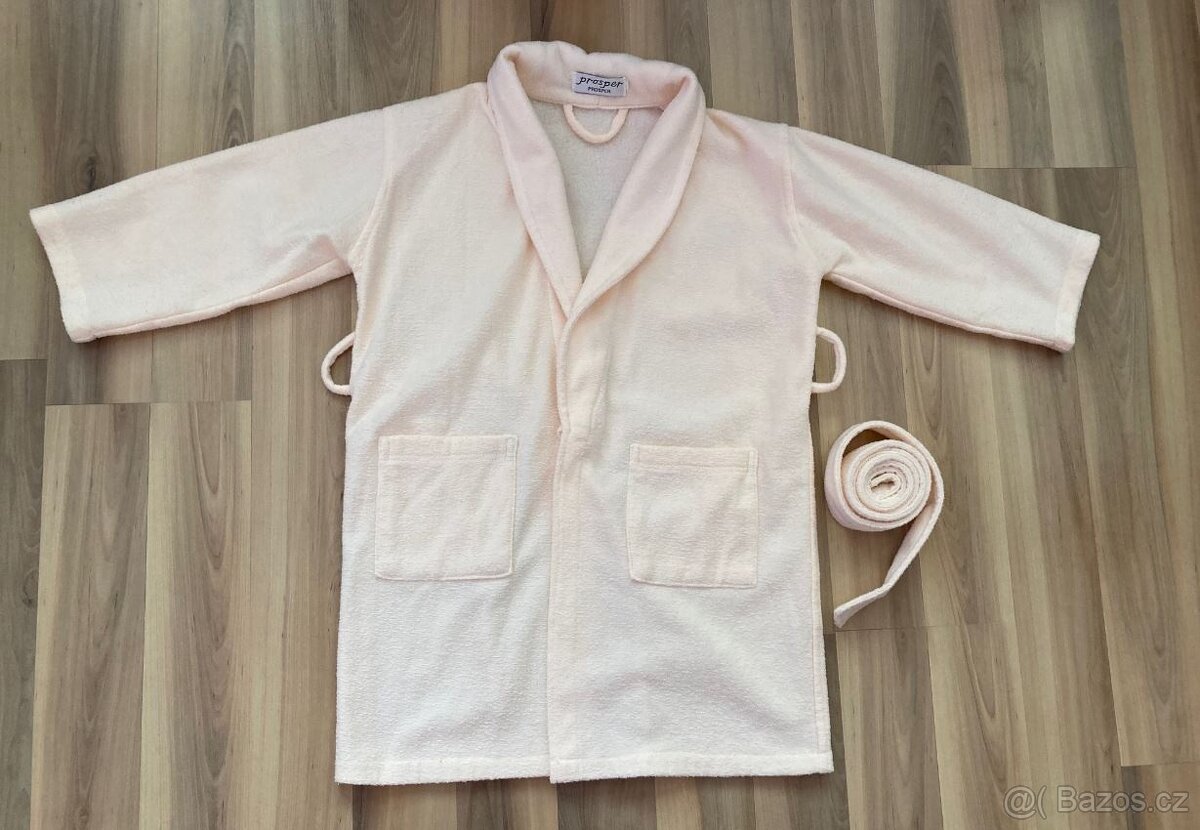 Bleděbroskvová barva, celková délkka 70 cm, šířka ramen 41 cm, délka rukávu 51 cm (měřeno od krku), materiál froté.