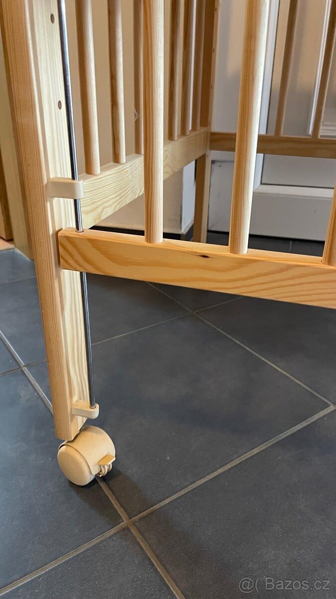 Prodám zánovní dřevěnou dětskou postýlku s kolečkama a boční sesouvací stěnou. Nebyla nikdy použitá, jen složená u rodiču pro všechny připady.