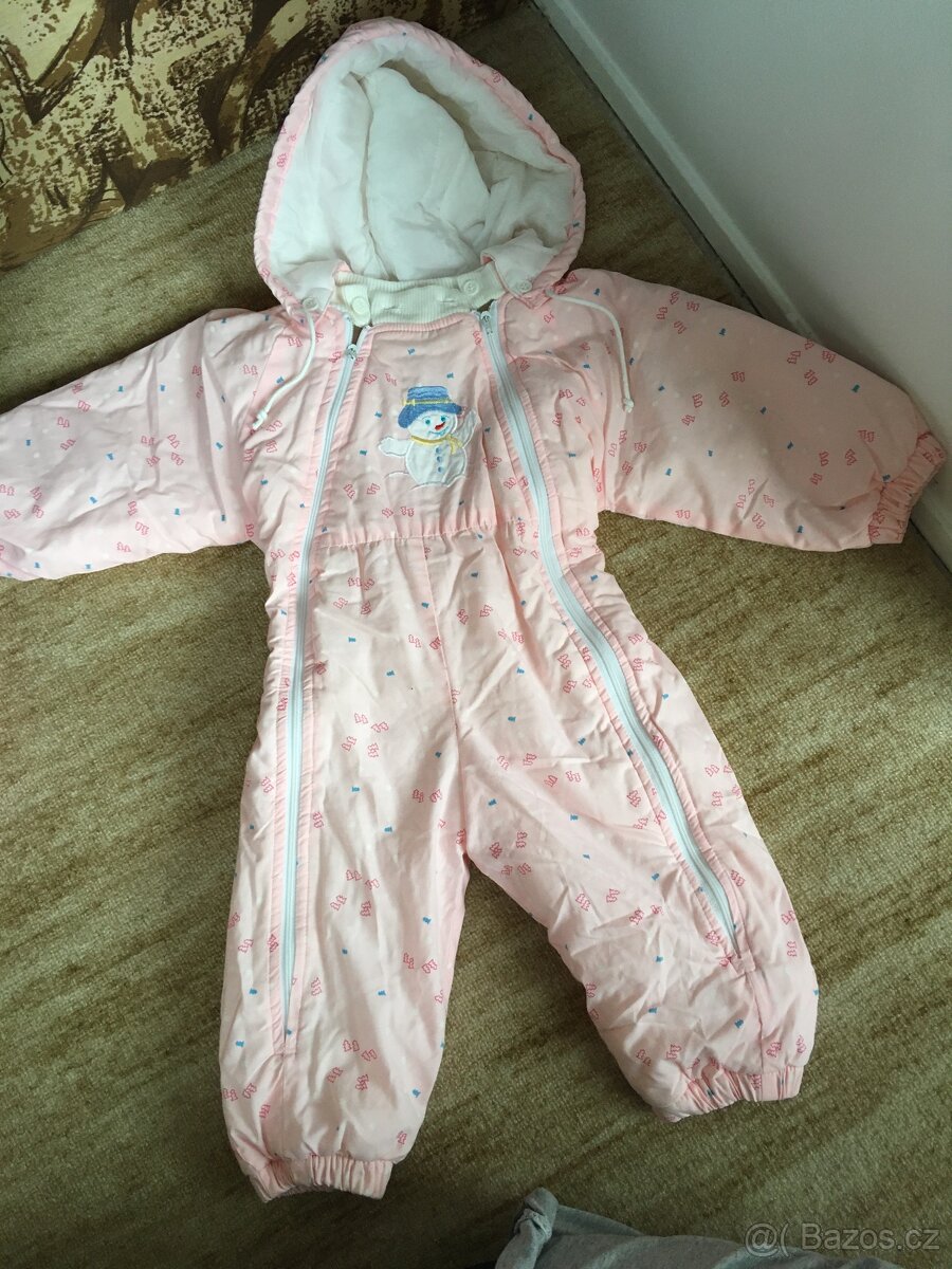 Prodám zimní, růžovou kombinézku se sněhulákem vel. 74-80 cm