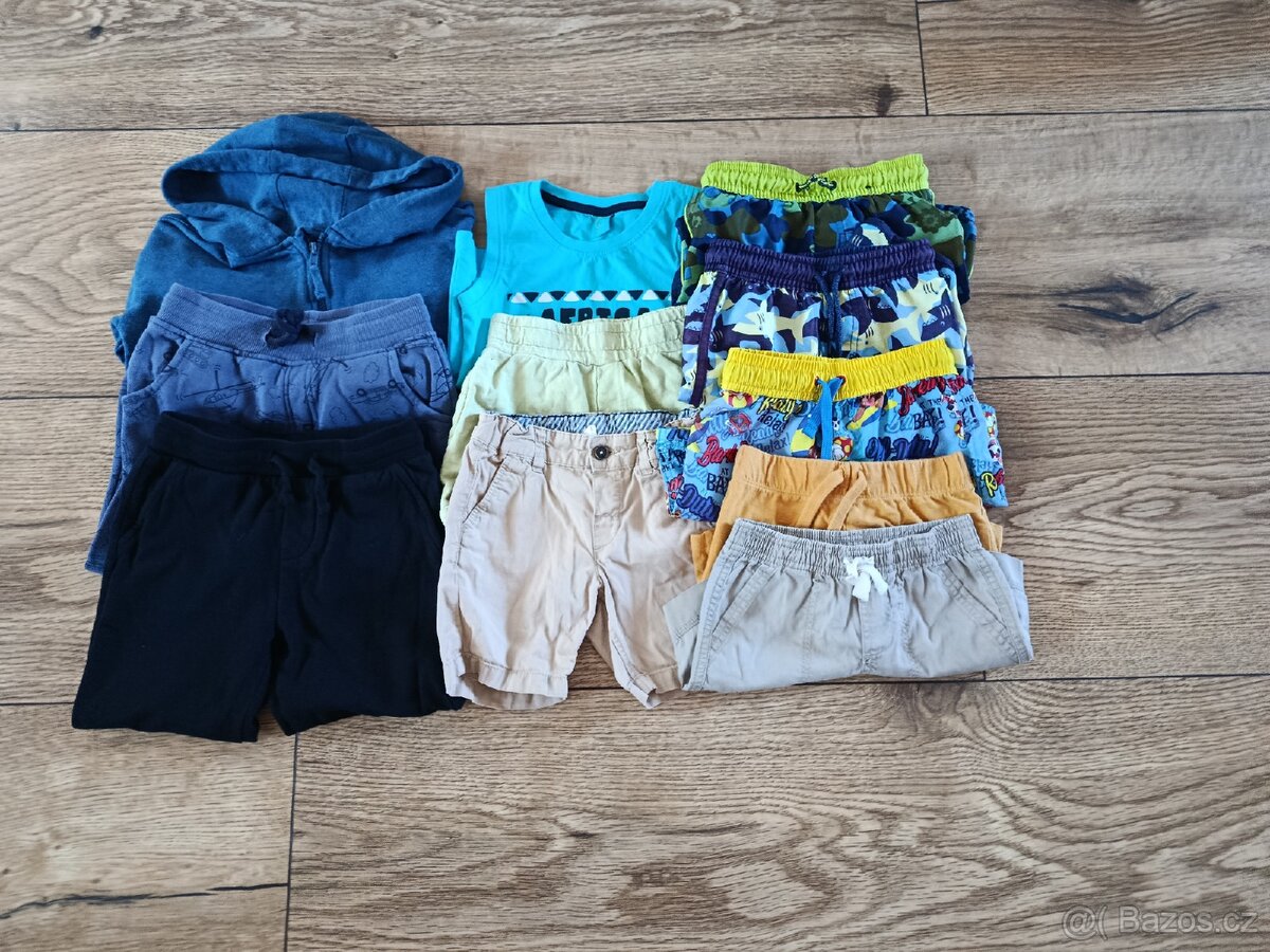 2ks tepláky 104(nové), mikina vel.116 skoro nová, tílko nové vel.104, kraťasy nové vel.92,kraťasy vel.86/92(5ks), kraťasy vel.104(2ks) kraťasy vel.74, tričko vel.98