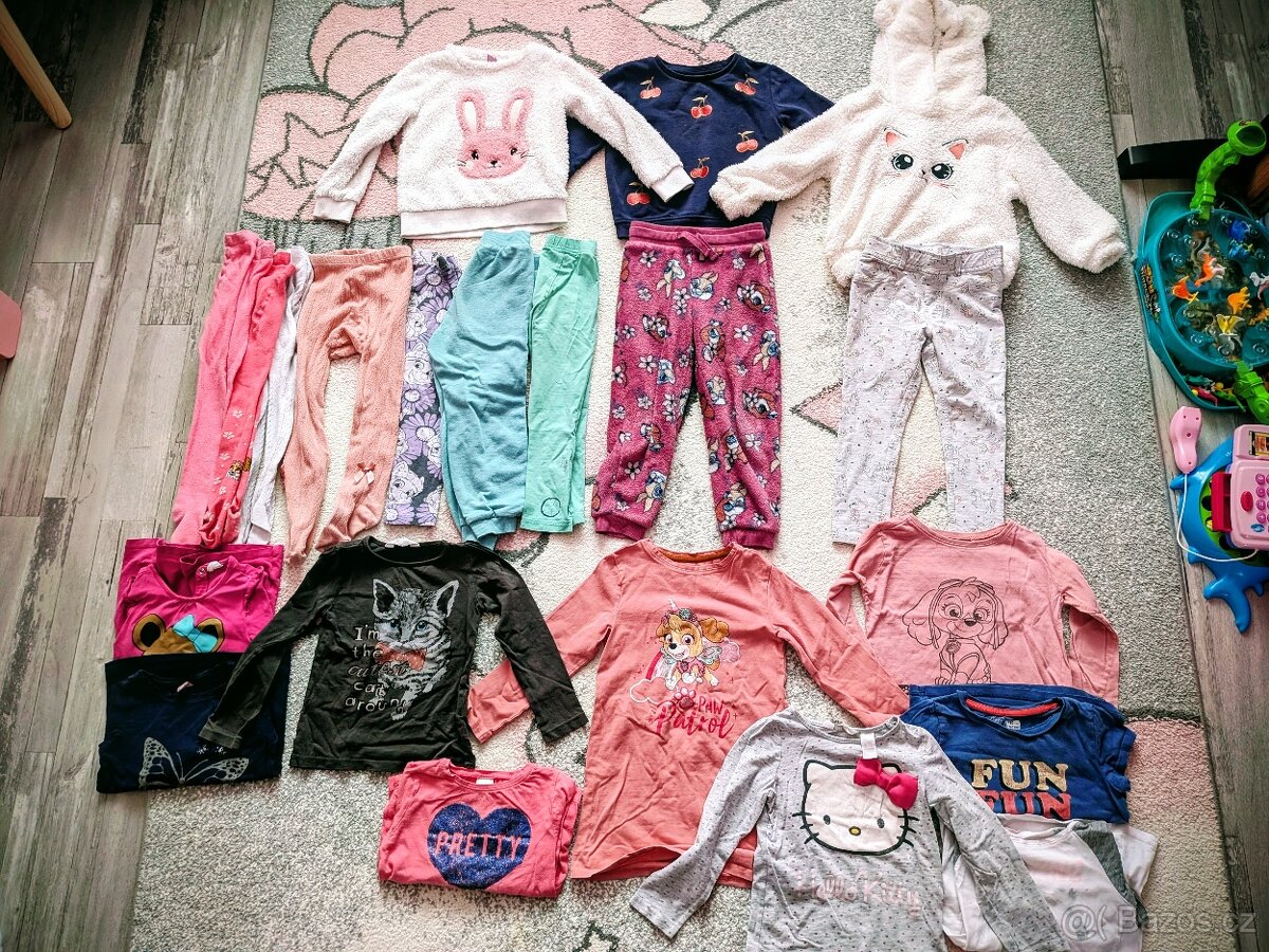 Teplé mikiny, zateplené kalhoty, tepláky, punčochy -v pěkném stavu. Tunika C&A top stav. Legíny a trika spíš na donošení.