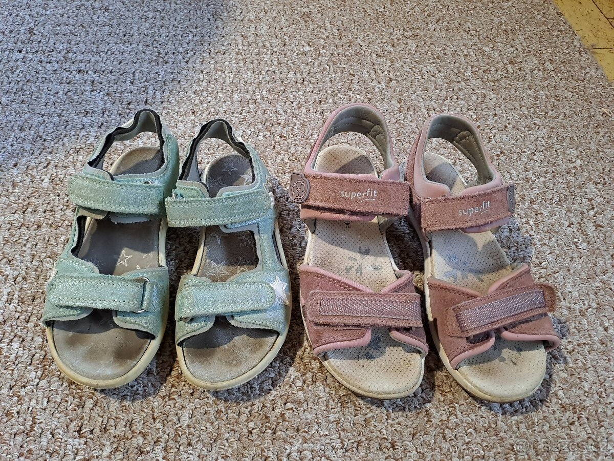 Sandály zn. Superfit (starorůžové), vel. 35, po jednom dítěti, suché zipy drží, na podrážkách je sedřená guma na patách (viz. foto).