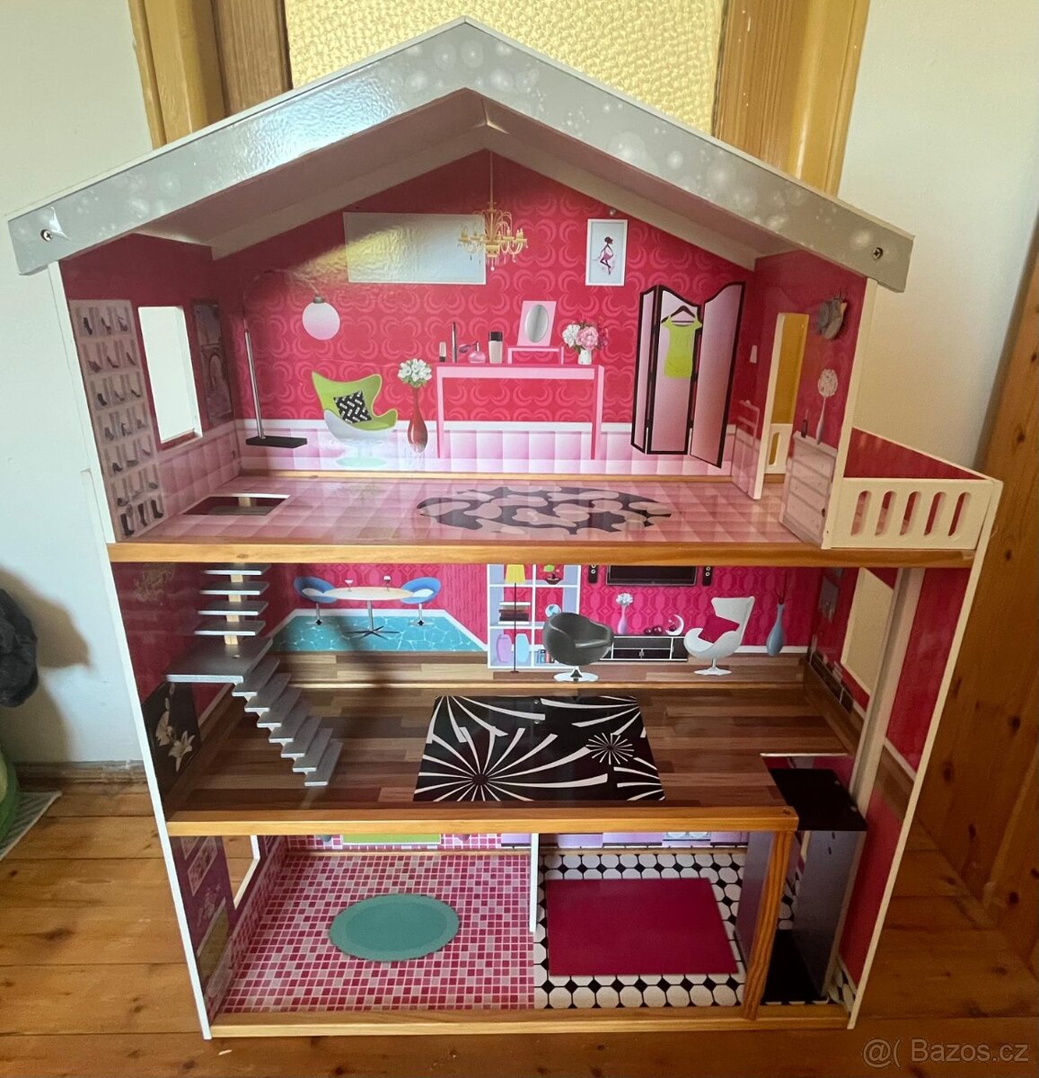 Prodám pěkný domeček pro panenky + nábytek. Rozměry 112x87x30. Osobní předání Hradec Králové, Pardubice, Kolín.