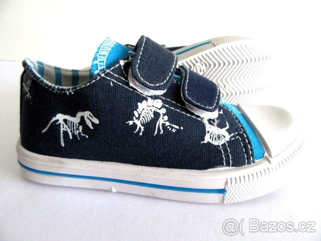 Nové plátěnky na suché zipy .V modré barvě vzor dinosaurů. Velikost 26 - stélka 17 cm. Pošta 89,-Kč.V případě zájmu volejte , pište.