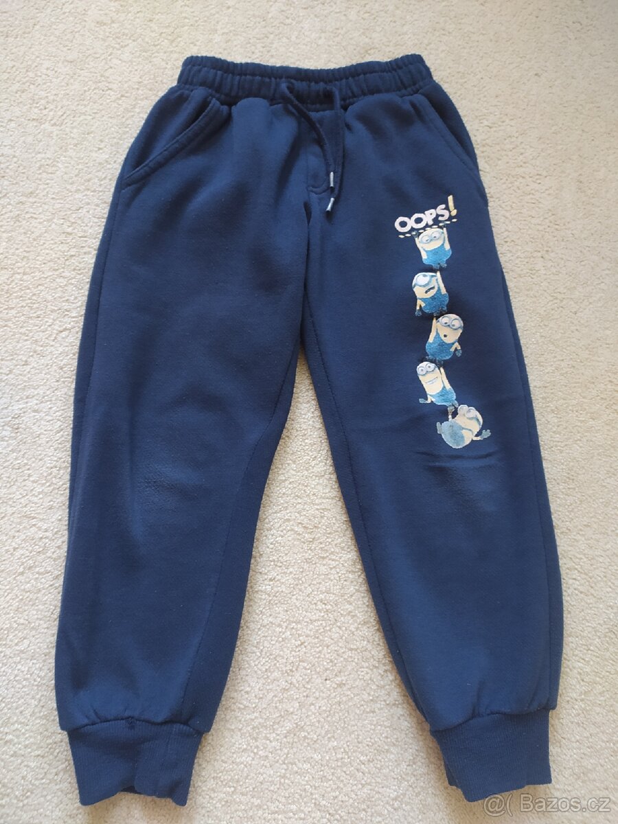 Tepláky vel.128 - [21.12. 2025]Teplejší tepláky,měli jsme na lítačku,na zahradu při chladnějším počasí,na jednom koleni zašité,prací žmolík.2 kapsy