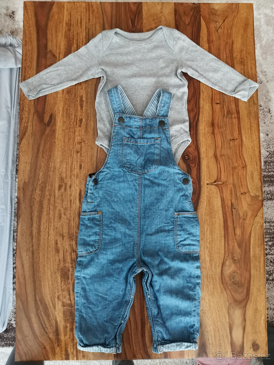 Krásný set dětského oblečení 1x džínové lacláče, 1x džínové kalhoty nové s visačkou