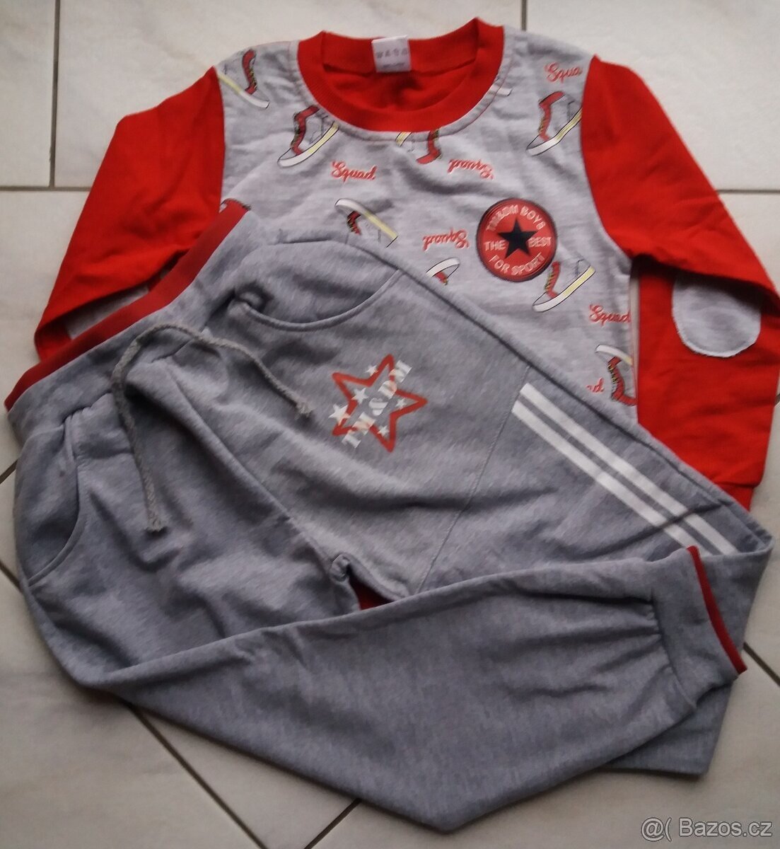 Prodám nové chlapecké tričko s dlouhým rukávem. Je bavlněné, nezateplené. Velikost 70. Délka 45cm, šířka ramen 28cm, délka rukávu od ramene 37cm. Kalhoty jsou bavlněné, nezateplené. Délka nohavic od pasu je 65cm. Velikost 75. Vypadají jako souprava. Cena za soupravu 200 Kč + 75 Kč poštovné do balíkovny nebo +105 Kč na adresu