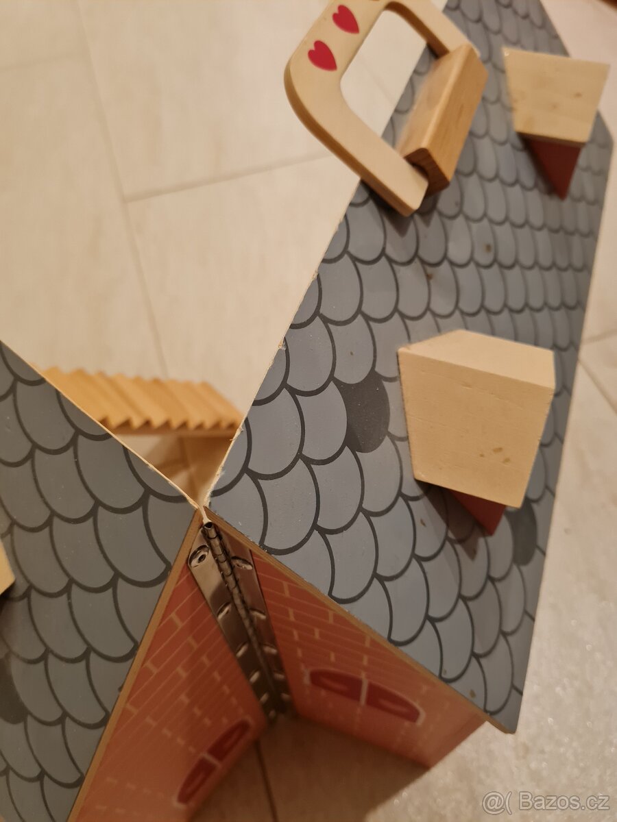 Dřevěný domeček je vyroben z masivního bukového dřeva. Střecha a 8 vhazovacích tvarů je z kvalitního plastu. Střecha má v sobě vyříznuté tvary, do kterých se vkládají příslušné ...