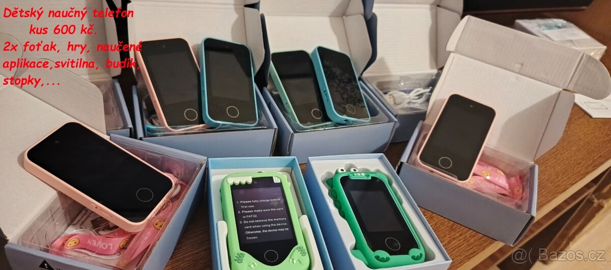 Dětský telefon, mp3, videa, přední a zádní fotoaparát, diář budík, svítilna, hry a naučné aplikace...
