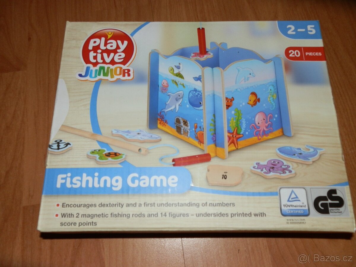 Hra podporuje zručnost a první porozumění číslům. 20dílná sada obsahuje: barevný rybník (4 destičky) se 14 dřevěnými figurkami a 2 pruty s magnetem. Spodní část figurek je označena počtem bodů. Doporučený věk: od 2 let. Hra je hraná, ale stále v moc pěkném stavu. Osobní předání Ostrava, po domluvě mohu zaslat.