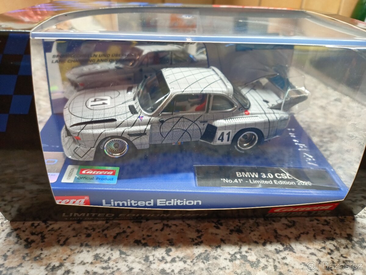 Prodám nebo vyměním samostatné auto Carrera 30924 BMW 3.5 CSL Limited Edition 2020 1kus z 1999 na značkovou digitální autodráhu Carrera řada D132, měřítko 1:32, Nový, originální a nerozbalený model, detailní provedení, tamponový tisk, svítí přední i zadní světla, lze použít i pro nižší analogovou řadu EVOLUTION. nahradní kartačky a zrcatka v balení. Prodávam ze sbírky vždy jen když mám více kusů stejného modelu.
