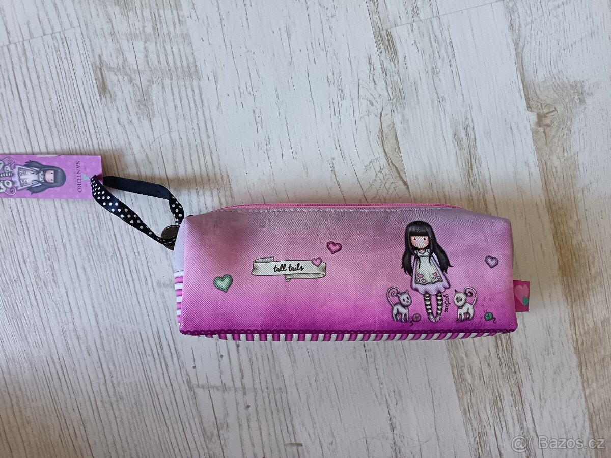 Krásný nový penál, etue značky Santoro London, moc hezká růžová barva s kombinací zelené uvnitř, s motivem Tall Tails pro každou dívku,