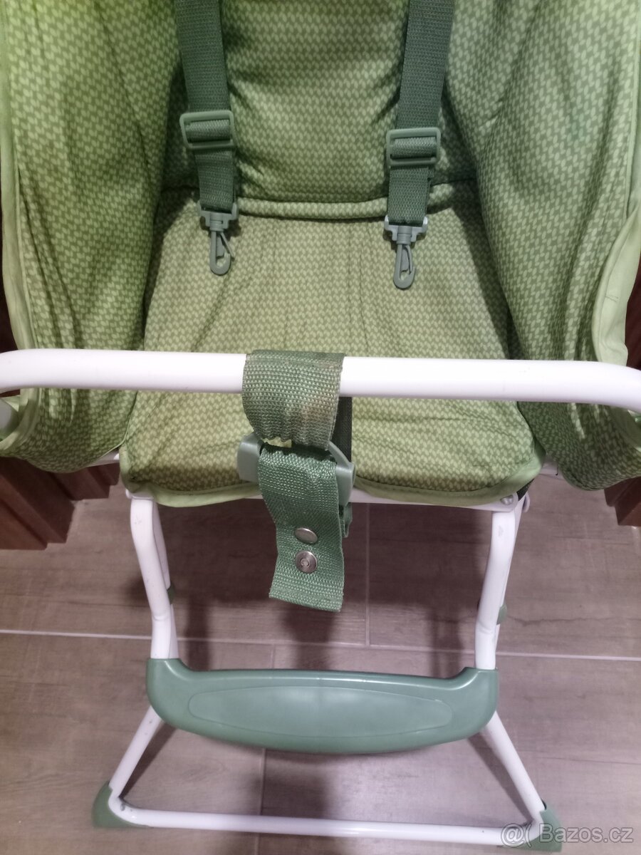 Prodám dětskou jídelní židličku, jsou na ní úvazy pro možnost připoutání dítka, mezi nohama je popruh proti propadnutí, lehce omyvatelná, za 100 Kč. Osobní odběr Pardubice, Lázně Bohdaneč, Přelouč.